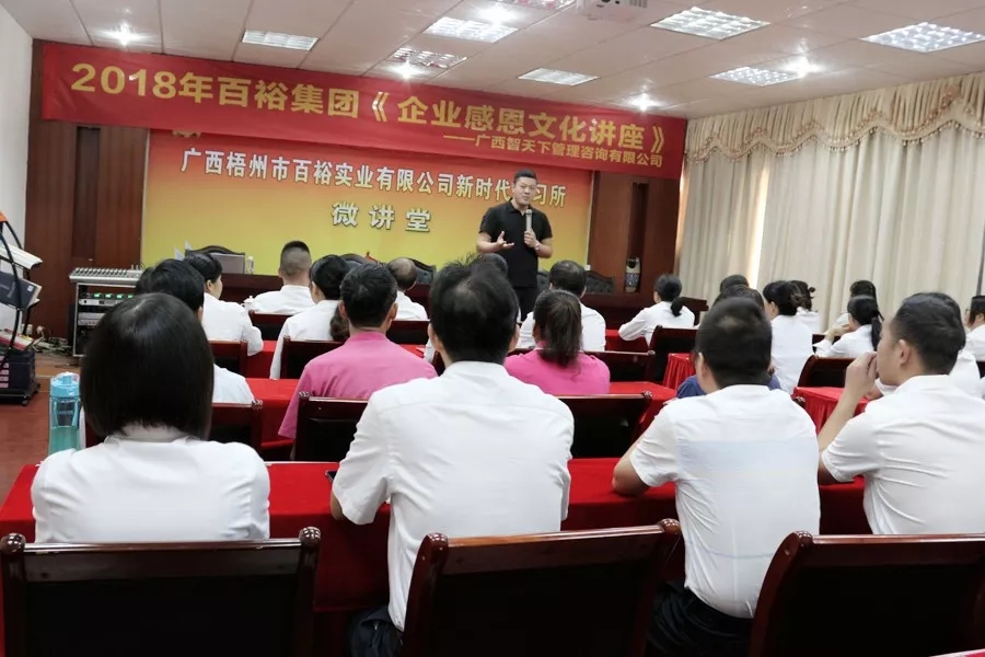 最后公司總經(jīng)理曾晏來(lái)發(fā)表感言:在百裕集團這個(gè)平臺上,我們在增長(cháng)著(zhù)閱歷,豐富著(zhù)自我,實(shí)現著(zhù)人生的價(jià)值;在這個(gè)平臺上,我們用激情點(diǎn)燃著(zhù)理想,用薪酬支配著(zhù)生活。因此,我們應該感謝企業(yè),感謝企業(yè)培養我們,感謝企業(yè),讓我們成長(cháng),感謝企業(yè)給予我們一片展示自我的天地,感恩就要有責任,讓我們立足本質(zhì),踐行“誠信、專(zhuān)業(yè)、創(chuàng )新、高效”的公司文化理念,從一點(diǎn)一滴做起,從身邊事情做起,常懷感恩之心,為全力實(shí)現公司又好又快和諧發(fā)展發(fā)一份光、散一份熱!感謝導師帶來(lái)的精彩教育講座,通過(guò)感恩培訓講座,讓我們從活動(dòng)中體驗感恩,并回歸現實(shí)生活,讓大家在不知不覺(jué)中受到教育,使其知、情、意、行在情理交融中實(shí)現自我完善,最終回報父母、回報社會(huì )、回報企業(yè)。
